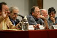 Juan Bañuelos, Juan Gelman, Marco Antonio Campos y Hugo Gutiérrez Vega durante la lectura del poemario