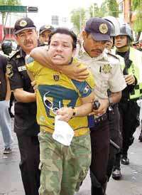 Ampliar la imagen Seguidores de Pumas fueron detenidos por la policía, tras causar desmanes luego de que su equipo cayó 2-1 ante el Toluca Foto: Notimex