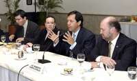 El candidato presidencial de Nueva Alianza, Roberto Campa Cifrián, durante su reunión con integrantes de la Cámara Británica de Comercio, ayer en la ciudad de México