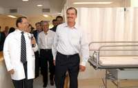 El presidente de la República, Vicente Fox, y a su derecha, en segundo plano, el director general del IMSS, Fernando Flores, en el recorrido inaugural del Hospital General Regional 66, en Ciudad Juárez