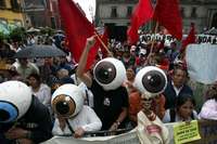 Reunión de la Comisión de Comunicaciones y Transportes del Senado. En la siguiente gráfica, protesta a las afueras del recinto de Xicoténcatl
