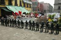 Efectivos de la PFP bloquearon ayer el paso a la Cámara de Senadores a manifestantes que marcharon en rechazo a la ley Televisa, cuya minuta se votó FOTOFrancisco Olvera