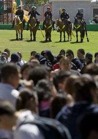 Elementos de la Policía Montada de San Diego, en California, vigilan a estudiantes que protestaban contra la reforma migratoria que se analiza en el Senado de Estados Unidos, en Chicano Park