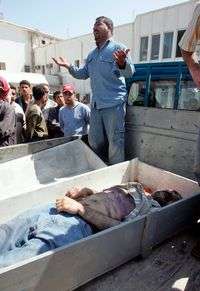 Frente a la morgue del hospital Yarmouk, un iraquí llora junto al cadáver de su hermano