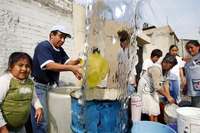 Habitantes de la delegación Iztapalapa reciben agua distribuida mediante camiones cisternas, luego de que varias colonias no reciben el recurso con normalidad desde hace más de dos semanas
