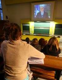 Cuando Chirac realizó el anuncio, desde la multitud se escucharon silbidos de descontento y consignas como "Chirac en prisión, De Villepin dimisión".