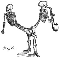 "DESPUES DE COMER vino a verme el suegro de Ambrosio, Amfotérico, y me confesó que se convirtió en su propio padre, porque su tiempo se enredó en forma de bucle. Me fijé que las barbillas y frentes de algunos hombres y mujeres retroceden. ¿Efecto de una recesión giroscópica, acortamiento de Lorentz-Ritzgeral, o resultado de perder dientes y darse frecuentes golpes en la frente contra los dinteles cuando suena la campana llamando a la mesa? Nos estamos acercando a la velocidad de la luz. Multitud de fenómenos desconocidos. Apareció un nuevo tipo de partículas elementales: los chicharrones. No muy grandes, un poco quemados. A mi cabeza le pasa algo raro. Recuerdo que mi padre se llamaba Bernabé, pero tenía también otro, con el nombre de nombre Batalón. ¿O tal vez era un lago de Hungría? A lo mejor me llamo Jeremías. Hemos dejado muy atrás el principio de Pauli, según el cual una persona puede ser habitada por una individualidad a la vez."