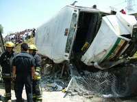 Ecatepec, Mex., 1º de abril. Ocho personas fallecieron y 25 resultaron heridas cuando el camión de la línea Transportes Ecatepec que los trasladaba a la estación del Metro Indios Verdes, en el Distrito Federal, chocó contra el muro de contención de la autopista México-Pachuca, rodó por una pendiente de seis metros y se topó con una vivienda del poblado de San Pedro Santa Clara.