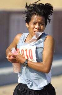 Por el lado de las damas, la historia fue como una copia, cuando la esposa de Camacho, la tlaxcalteca Paula Apolonio cruzó la meta, pero en tercer lugar (2:44.57), detrás de las keniatas Muhami (2:41.15) y Susan Muthmi (2:43.14), ocupantes de la primera y segunda posiciones, respectivamente.