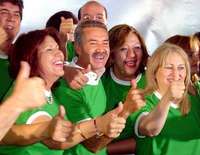 Roberto Madrazo Pintado, candidato de la Alianza por México, posa con un grupo de candidatos priístas a diputados