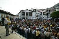 En Taxco, un bastión panista, más de 3 mil asistentes lo respaldaron y levantaron la mano para expresar su disposición a participar en la campaña, a conven- cer a amigos y familiares de votar por López Obrador y por los demás candidatos de la coalición por el Bien de Todos al Senado de la República y a la Cámara de Diputados.
