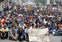 Finalmente, Afp informó que al grito de "queremos trabajar" miles de bolivianos marcharon hoy por calles del barrio de Flores, en Buenos Aires, donde vive gran parte de la colectividad en Argentina, en defensa de sus fuentes de trabajo tras la clausura de varios talleres textiles por un incendio en uno de ellos, con saldo de seis muertos