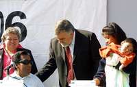 El jefe de Gobierno del Distrito Federal, Alejandro Encinas, entregó ayer en el Zócalo 750 becas de apoyo económico a personas con discapacidad
