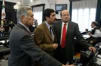 Ampliar la imagen Sesión ordinaria en la Cámara de Senadores. En la imagen, Manuel Bartlett, Javier Corral y Raúl Ojeda, opositores a la ley Televisa FOTOJesús Villaseca
