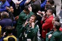 Corredores de futuros de oro en la sesión de la bolsa mercantil de Nueva York, donde el oro superó 600 dólares la onza