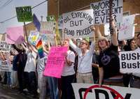 Opositores a la guerra en Irak se manifestaron ayer afuera del Colegio Piedmont en Charlotte, Carolina del Norte, donde el presidente George W. Bush pronunció un discurso en defensa de la ocupación del país petrolero