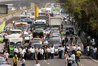 Taxistas bloquearon ayer por varias horas los carriles centrales de la avenida Insurgentes Norte, frente al paradero de Indios Verdes, en demanda de un espacio para el ascenso de pasajeros a sus unidades