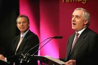 Armagh, 6 de abril. El primer ministro británico, Tony Blair, y su par irlandés, Bertie Ahern, dieron el jueves a los representantes electos protestantes y católicos un plazo hasta el 24 de noviembre para formar un gobierno compartido para Irlanda del Norte. En una ceremonia en Armagh, en el sur del Ulster, los dos líderes lanzaron este ultimátum al anunciar un calendario que aspira a revitalizar el estancado proceso de paz.