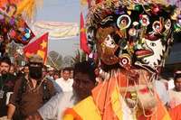 Danzantes tradicionales recibieron a la caravana zapatista en Ocotepec, Morelos