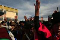 Autoridades aymaras, conocidas como jilakatas, levantan sus manos para votar durante un congreso de 20 provincias del altiplano boliviano para elegir a su presidente, ayer en El Alto, ciudad cercana a La Paz que cuenta con decenas de miles de miembros de esa etnia