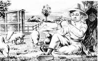 Ampliar la imagen Imagen clásica de Benito Juárez, tocando la flauta mientras cuida su rebaño, que aparece en las monografías