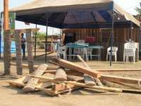 Aspecto del bar Lazaro's & Goldos, en Petatlán, Guerrero, donde la madrugada de ayer varios individuos lanzaron una granada de fragmentación contra los asistentes a una fiesta. A causa de la explosión fallecieron dos personas y 40 resultaron heridas