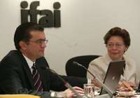 Alonso Lujambio y María Marván, durante la reunión del IFAI en la que resolvieron 42 solicitudes de información