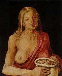 Años después, en 1507, Alberto Durero pintó su versión de la avaricia: una anciana decrépita de sonrisa repugnante, desdentada, semicubierta con una túnica, un seno marchito a la vista y en las manos un saco de monedas.