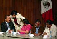 Ampliar la imagen El Consejo Político Nacional del PRI en sesión extraordinaria aprobó listas de candidatos al Senado y a la Cámara de Diputados; en la foto, Manlio Fabio Beltrones, María de los Angeles Moreno, Beatriz Paredes, Heladio Ramírez y Carlos Flores Rico FOTOJosé Antonio López