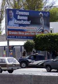 Anuncio espectacular de obras públicas con los colores del PAN y la fotografía del gobernador de Querétaro, Francisco Garrido Patrón