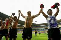 Guadalajara, Jal. 16 de abril. Los jugadores atlistas festejaron su salvación en la presente campaña y ahora ya hasta piensan en clasificar a las finales. "Nos quedan dos partidos y vamos a intentar avanzar a la liguilla", expresó un entusiasta Daniel Osorno, quien anotó su segundo tanto de la campaña.