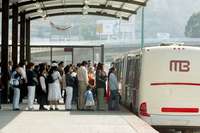 El Metrobús es considerado por expertos como una opción para desalentar el transporte individual, y con ello abatir la contaminación y la congestión vial. La imagen, en la estación Indios Verdes