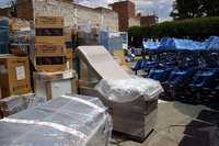 León, Gto., 19 de abril. Desde enero, cientos de cajas de medicamentos, material quirúrgico, mobiliario, frigoríficos, equipo de cómputo y video propiedad del Seguro Popular permanecen amontonados y a la intemperie en el estacionamiento de la jurisdicción sanitaria número 5 de esta demarcación.