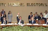 En imagen de archivo, aspecto de una sesión del Instituto Federal Electoral. Al centro aparece el consejero presidente del organismo, Luis Carlos Ugalde