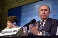 Washington, DC, 20 de abril. Una conferencia de prensa que ofrecía hoy Paul Wolfowitz, presidente del Banco Mundial, fue interrumpida unos momentos por miembros de organizaciones no gubernamentales que lograron ingresar al salón y a gritos culpaban a los organismos financieros de ser promotores de la corrupción.