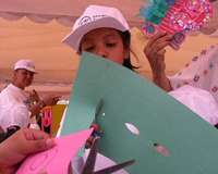 Una pequeña participa en las actividades recreativas organizadas por adelantado en el albergue temporal de la Procuraduría General de Justicia del Distrito Federal con motivo del Día del Niño