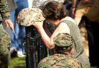Una mujer llora durante el acto en el Campo Lejeune, Carolina del Norte, en memoria de los marines que murieron en las operaciones militares en Irak, y que pertenecían a la segunda división