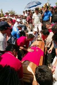 Los dolientes llevaron los restos mortales de Héctor Alvarez a la misa de cuerpo presente; luego, acompañados de música de banda -tal vez la que gustaba al obrero caído- empezaron un largo cortejo, de varios kilómetros, hacia el panteón, sin chistar por ese calor implacable de la costa michoacana.