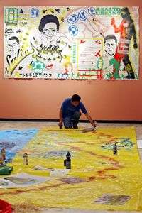 Mientras crea su obra sobre una de las paredes de la galería, unas figuras de camiones con las que busca rendirle un homenaje a la vida de las carreteras del país, Watchavato, quien acaba de ser contratado por una empresa de tenis, recuerda que su nombre implica un juego de palabras que invita a ver su obra.