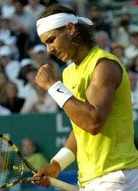 El español Rafael Nadal reaccionó así al ganar ayer el encuentro al suizo Roger Federer, en el abierto de Montecarlo, igualando al austriaco Thomas Muster