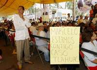 A diferencia de otros mítines, donde los asistentes le han expresado sus inquietudes sobre demandas para la comunidad, en esta ocasión sólo uno de los asistentes exhibió una cartulina en la que rezaba "Marcelo esperamos tu apoyo para el caso Tláhuac".