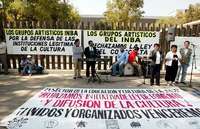 Ampliar la imagen Protesta de grupos artísticos del INBA contra la ley Bermúdez, hace unos días, afuera de la Cámara de Diputados, en el Palacio Legislativo de San Lázaro FOTOAlfredoDomínguez