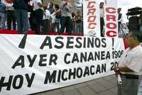 Santa Cruz Ayotuzco, Edomex. 24 de abril. "Es una injusticia que el gobierno y los extranjeros nos estén quitando la tierra que nos vio nacer. Los compañeros de bienes comunales tienen órdenes de aprehensión y no pueden salir de sus casas por temor a ser detenidos." Habla Javier, comunero otomí de San Francisco Ayotuzco: "La empresa que dice llamarse Francia en México nos ha demandado por defender nuestra tierra. En 2005 fueron encarcelados dos compañeros. Ese es el precio que pagamos los comuneros del estado de México por defender nuestros derechos".