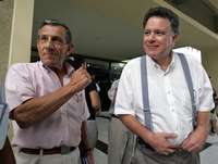 El alto comisionado para la paz, Luis Carlos Restrepo, y los líderes rebeldes Antonio García y Francisco Galán se reunieron este martes en el hotel Palco, sin ofrecer declaraciones a la prensa.