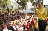 Marcelo Ebrard Casaubón, candidato de PRD, PT y Convergencia a la jefatura de Gobierno del Distrito Federal, se reunió ayer con simpatizantes en el jardín Hidalgo de la delegación Azcapotzalco