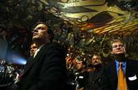 El abanderado del PRD al Gobierno del DF, Marcelo Ebrard, atestiguó la protesta de los candidatos a diputados y delegados de su partido en el Polyforum Cultural Siqueiros