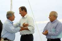 Aldama, Tamps., 27 de abril. El candidato del Partido Acción Nacional (PAN) a la Presidencia de la República, Felipe Calderón Hinojosa, recurrió a términos campiranos para hablar de la contienda electoral. Sostuvo que se siente como "el zaino de Agua Prieta" (en referencia al caballo de un corrido, según el cual "alcanza y gana"), mientras hay "quien tuvo salida de caballo y está llegando a la meta como mula cansada".