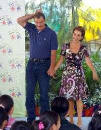 El presidente Vicente Fox y su esposa, Marta Sahagún, durante el festejo del Día del Niño en la primaria Guadalupe Victoria