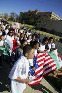 Ampliar la imagen Manifestación estudiantil, el 19 de abril pasado en Denver, Colorado, en apoyo a los derechos de los migrantes Foto: Ap