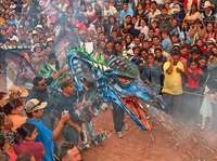 Otumba, Méx., 1 de mayo. Las caracterizaciones de los políticos del momento que año con año se veían en el tradicional carnaval de disfraces de la Feria del Burro en Otumba, esta vez estuvieron prácticamente ausentes.